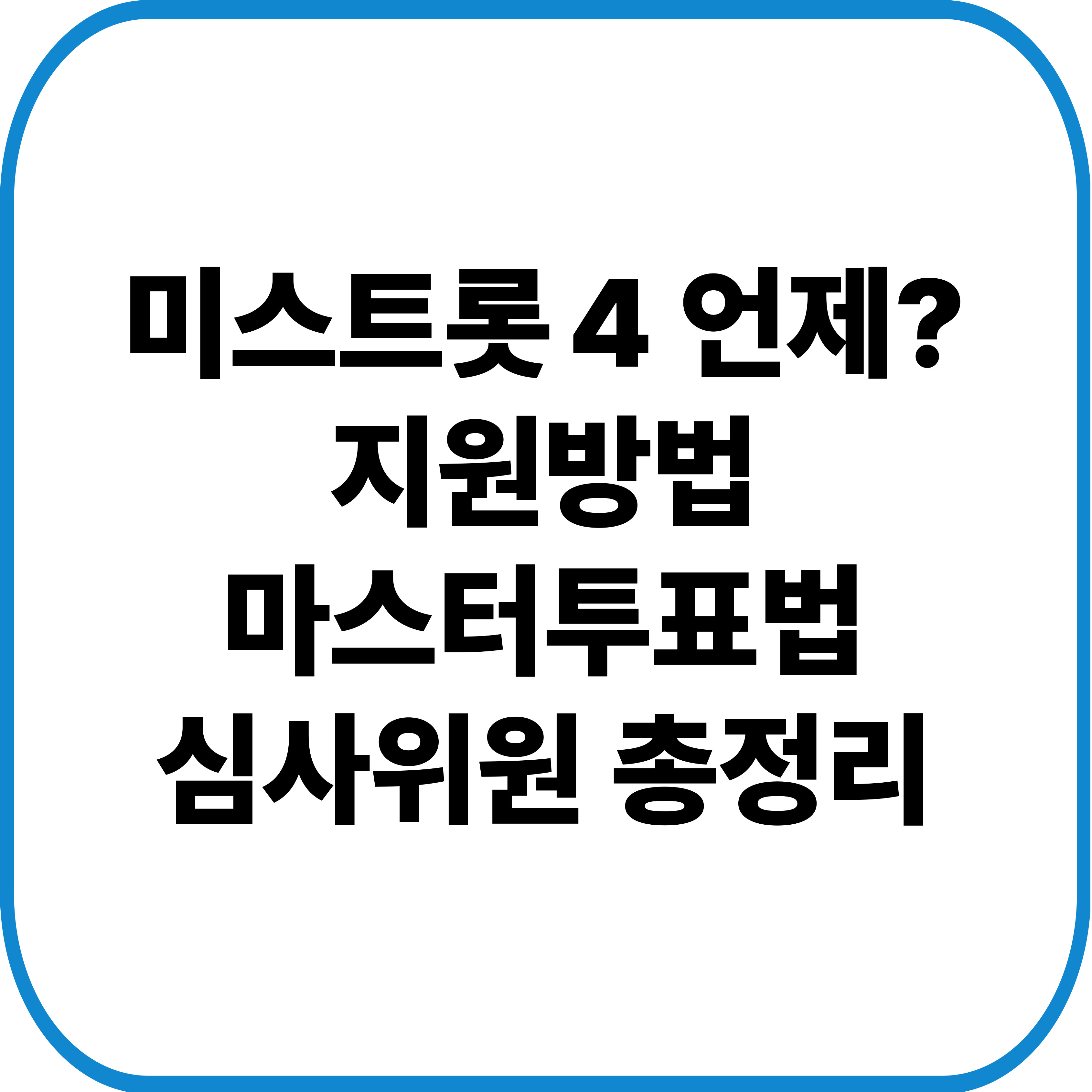 트로트 여왕을 가리는 미스트롯 4가 2025년 하반기 드디어 시작됩니다! 참가 일정, 투표 방식, 그리고 심사위원 등 핵심 정보를 한눈에 정리해드립니다.