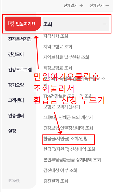 - 홈페이지 신청: 국민건강보험공단 홈페이지에 로그인한 후, 민원 메뉴에서 환급금 조회 및 신청이 가능합니다.