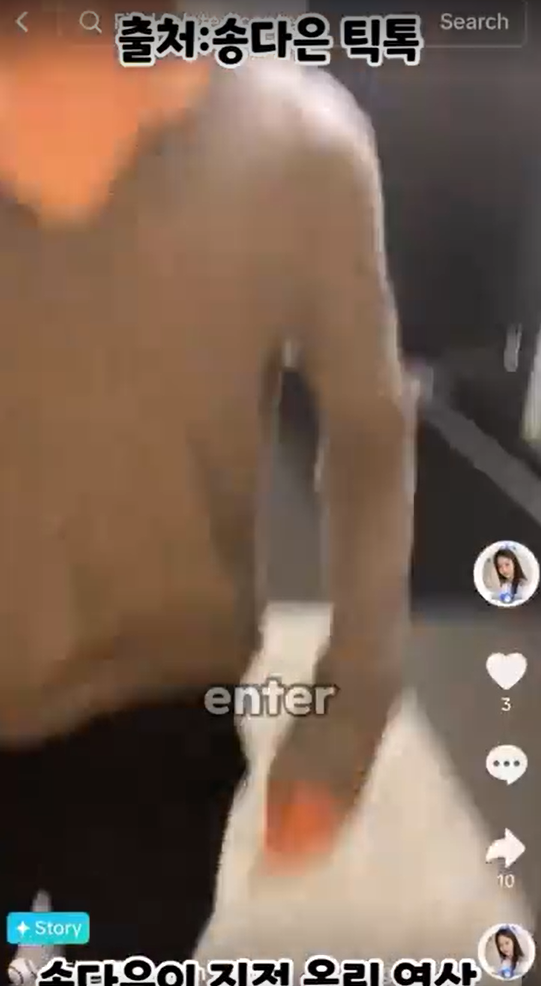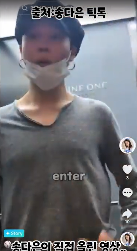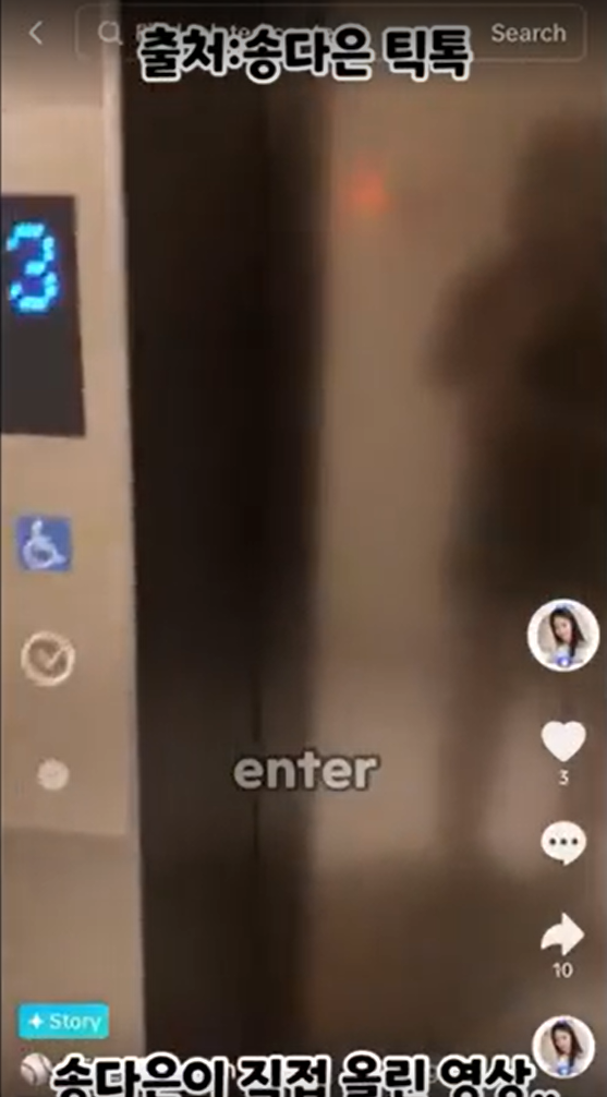 논란의 중심은 그녀가 틱톡에 올린 짧은 영상. 송다은이 엘리베이터 앞에서 기다리던 인물로 지민이 등장하며 "아 깜짝이야. 나 들어오는 거 알았어?"라고 말하는 장면이 공개됐습니다.