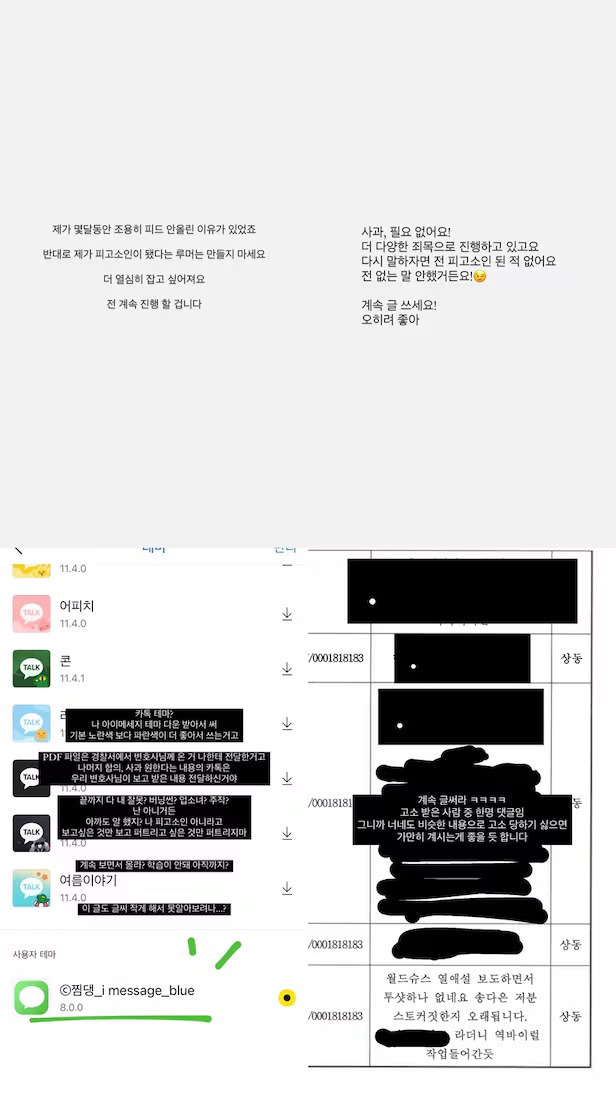 - 2025년 4월, 자신에게 ‘마약, 업소녀, 주작’ 등 루머를 퍼뜨린 악플러들에 대해 고소장 접수 및 수사결과통지서 공개