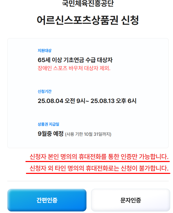 | 신청 방법 | 👉 어르신 스포츠 상품권 누리집에서 온라인 신청 |